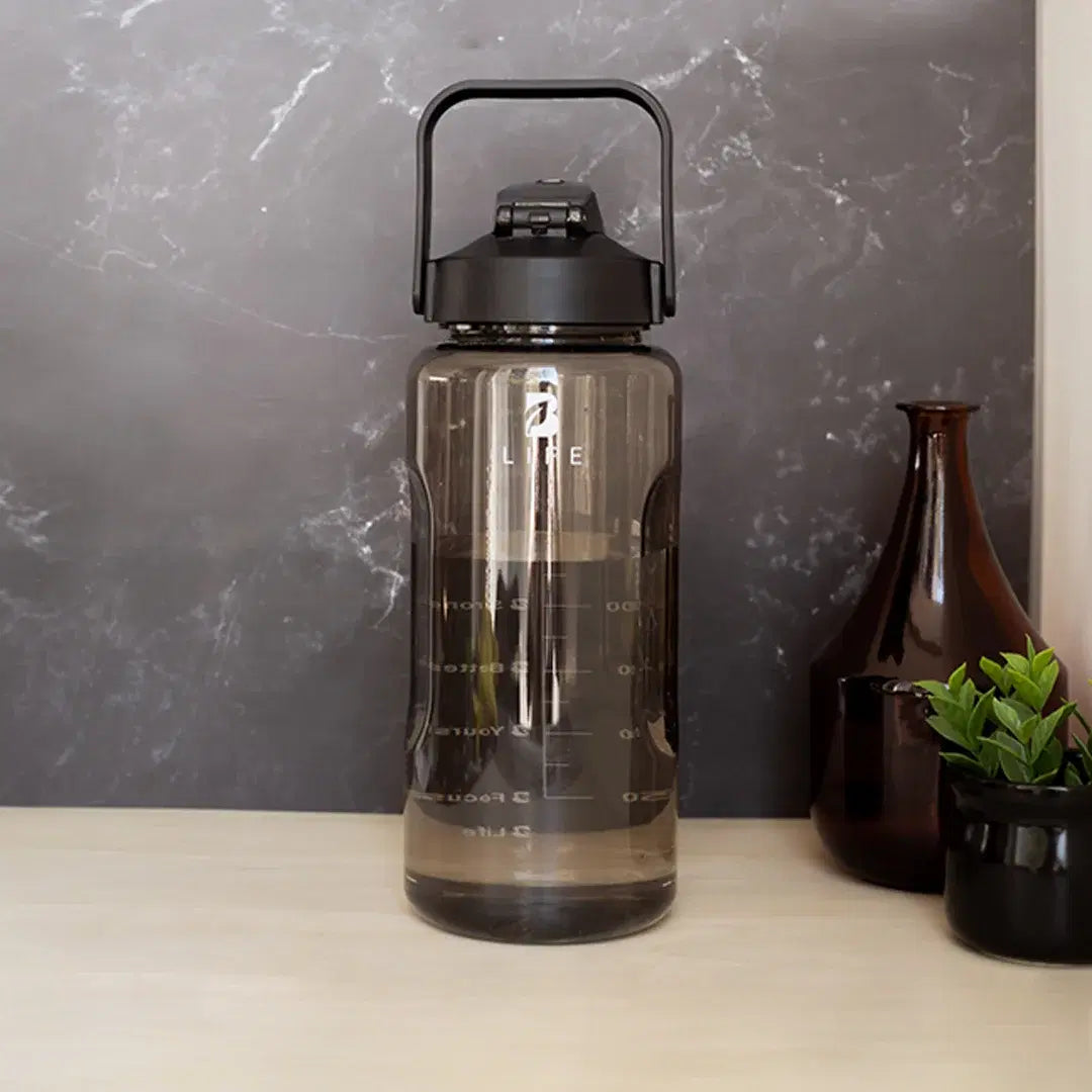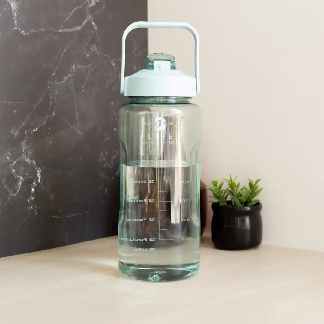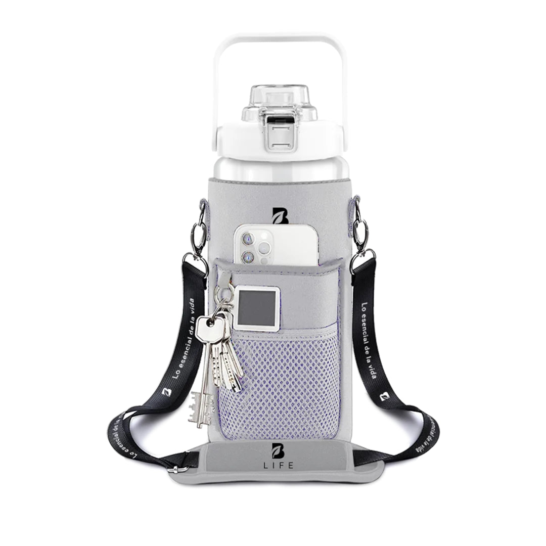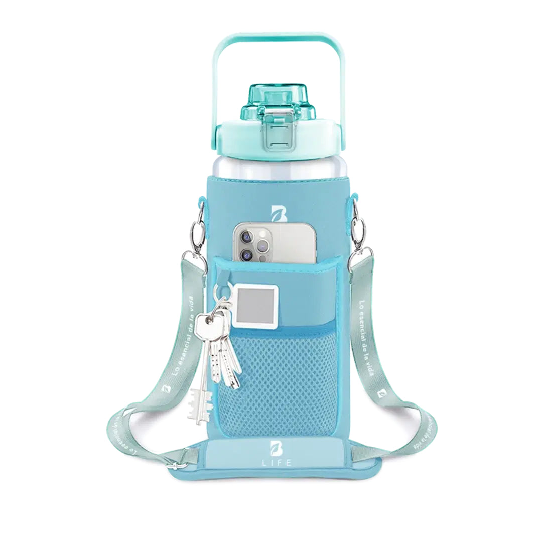 ¡Botella Motivacional B Life®, hidrátate con estilo! Esta botella libre de PET con capacidad para 2 L es el accesorio ideal para acompañarte a todos lados. Su funda de almacenamiento hecha de policloropreno, tiene una práctica correa para su fácil transportación, además de prácticos bolsillos para guardar tu celular o llaves.