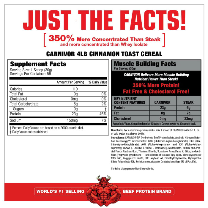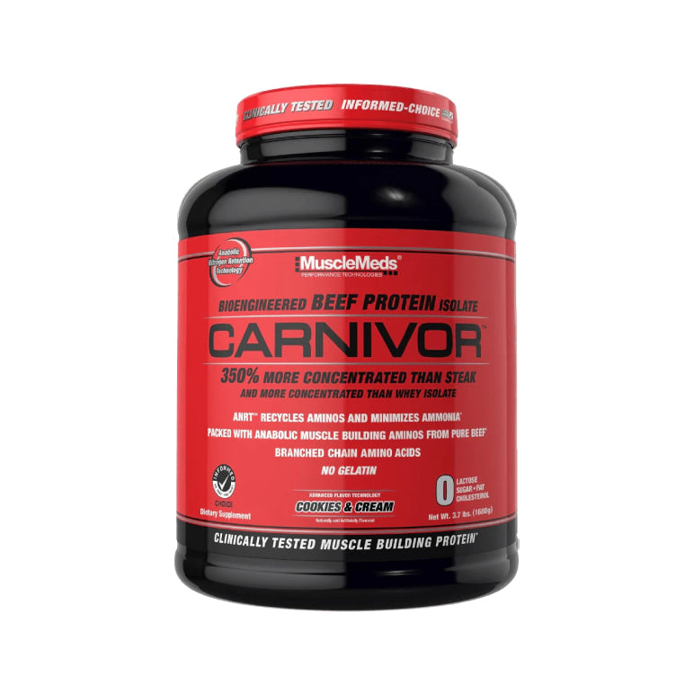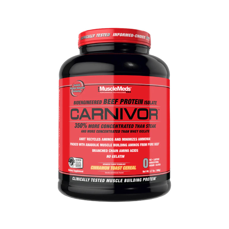 CARNIVOR proteína isolatada de res te otorga todo el poder de la carne de res para el crecimiento muscular con mayores niveles de aminoácidos que otras fuentes de proteína usadas en los suplementos, incluyendo el suero de leche, soya, leche y huevo. Además, está libre de azúcar, grasa, lactosa, y colesterol.